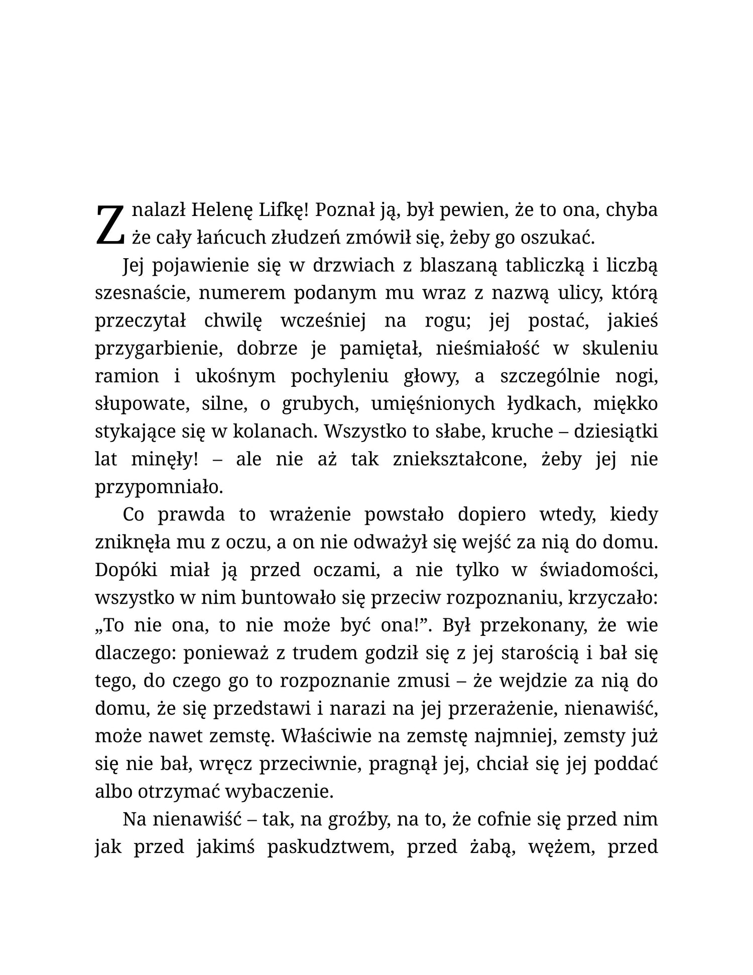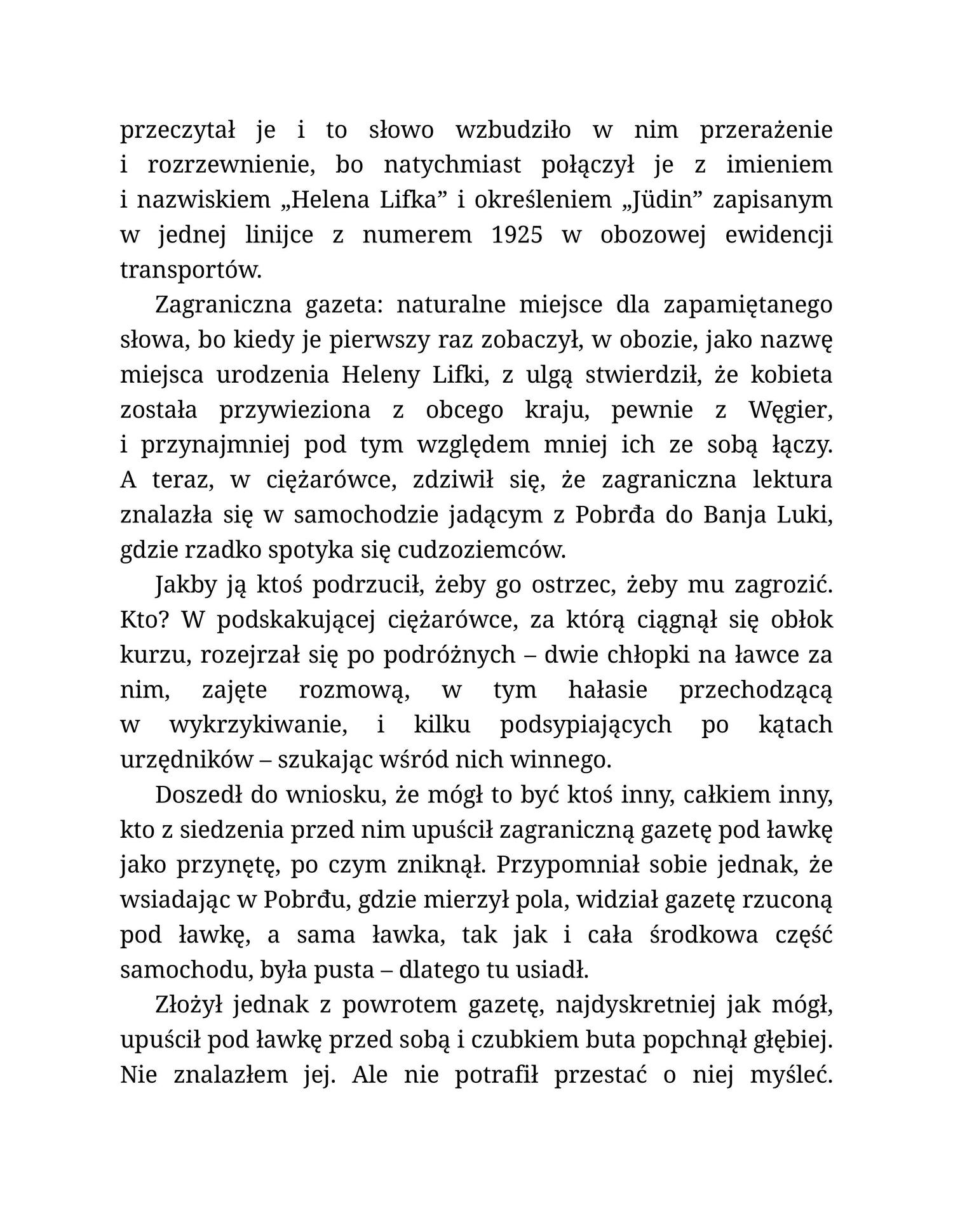 Vilko Lamian, jugosłowiański Żyd, przetrwał Auschwitz, służąc niemieckim oprawcom jako kapo ze świadomością, że w każdej chwili i bez powodu może stracić swój uprzywilejowany status. Po wojnie ułożył sobie życie w bośniackiej Banja Luce. Wydaje się, że gruba warstwa rutyny i nudnego urzędniczego życia zdążyła przykryć obozowe doświadczenia, gdy pewnego dnia Lamian trafia w gazecie na znajomą nazwę miasta, miejsca pochodzenia Heleny Lifki, jednej z jego ofiar, kobiet, które gwałcił w obozie, Żydówki tak jak on. Przeszłość wraca do Lamiana z niespodziewaną mocą, a wyrzuty sumienia każą mu zmierzyć się z własnym pochodzeniem i ruszyć na poszukiwania tej kobiety. Czy ją odnajdzie, czy uda mu się opowiedzieć jej o sobie i prosić o przebaczenie? Czy przebaczenie w ogóle jest możliwe?