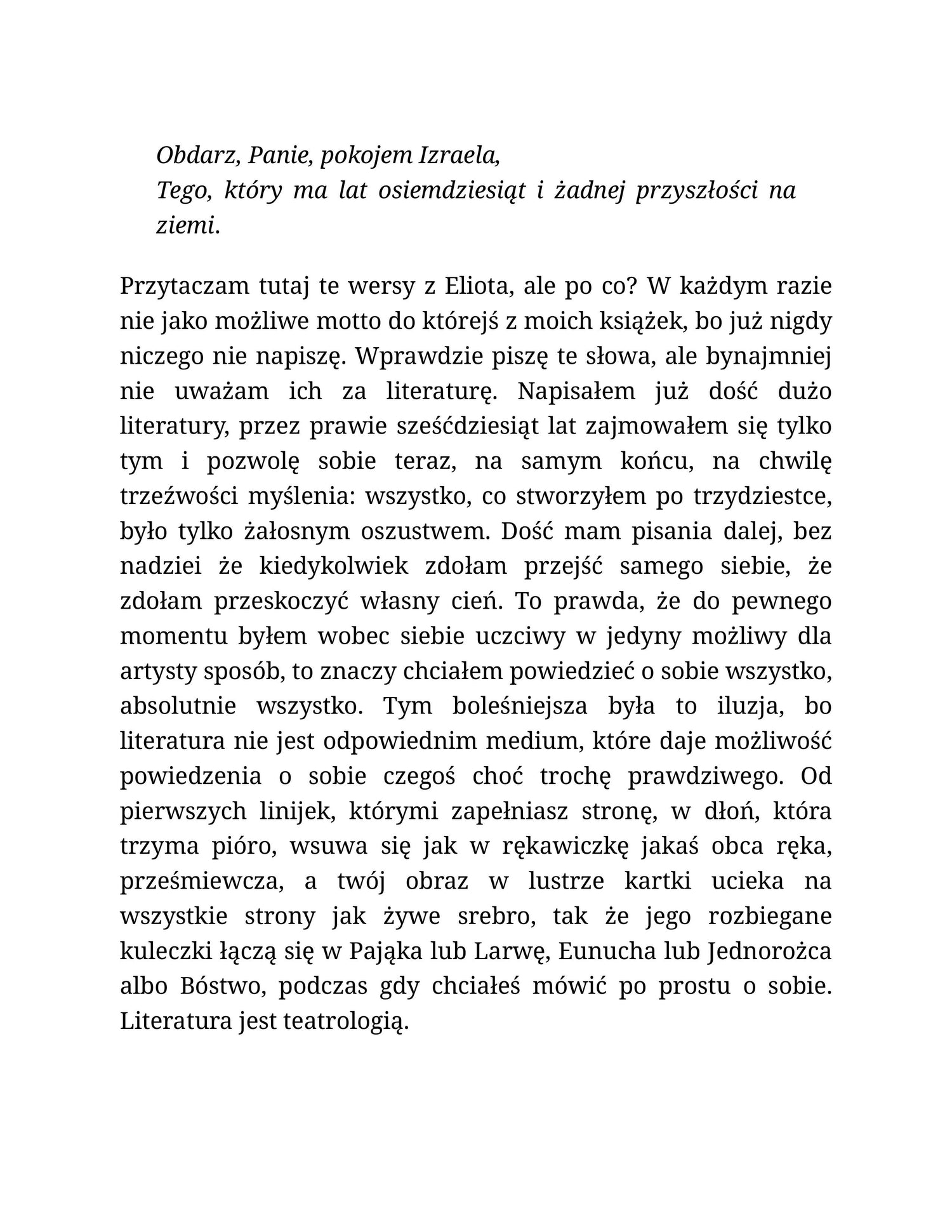Pięć utworów, skomponowanych w sposób przypominający powieść (z prologiem i epilogiem), łączy tematyka snów, obrazów i obsesji przenikających życie bohaterów. A może jest tylko jeden bohater na różnych etapach swojego życia? Kluczem do zrozumienia istoty rzeczywistości jest pamięć — kalejdoskopowa, sięgająca dzieciństwa, spleciona z nieokiełznaną wyobraźnią, nieznanymi pragnieniami i niespodziewanymi przemianami dorastania.