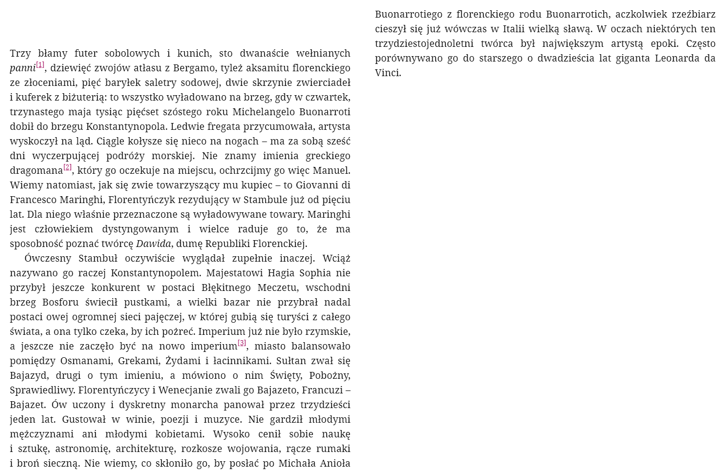 Konstantynopol, 1506 rok. Michał Anioł przybywa na dwór sułtana, by zaprojektować dla niego most. Po tym, jak projekt jego wielkiego rywala, Leonarda da Vinci został odrzucony, władca oferuje artyście ogromne wynagrodzenie i obietnicę nieśmiertelności. Michał Anioł – po chwili wahania – wyjeżdża z Rzymu i wybiera się w podróż na Wschód, uwiedziony wizją stworzenia opus magnum i możliwością przewyższenia kunsztu Leonarda.
