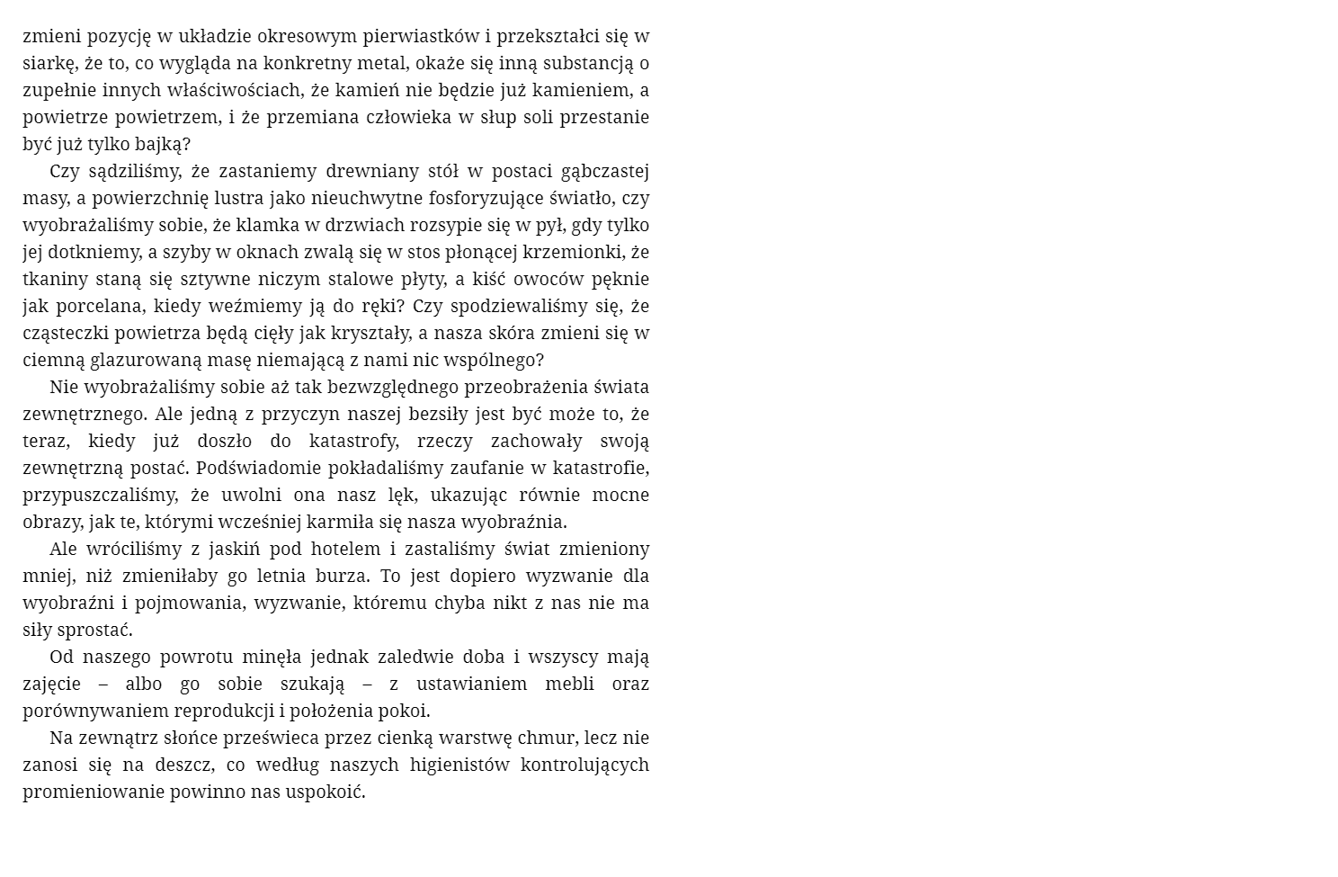Klasyczna powieść postapokaliptyczna rozgrywająca się w scenerii rodem z Białego lotosu.