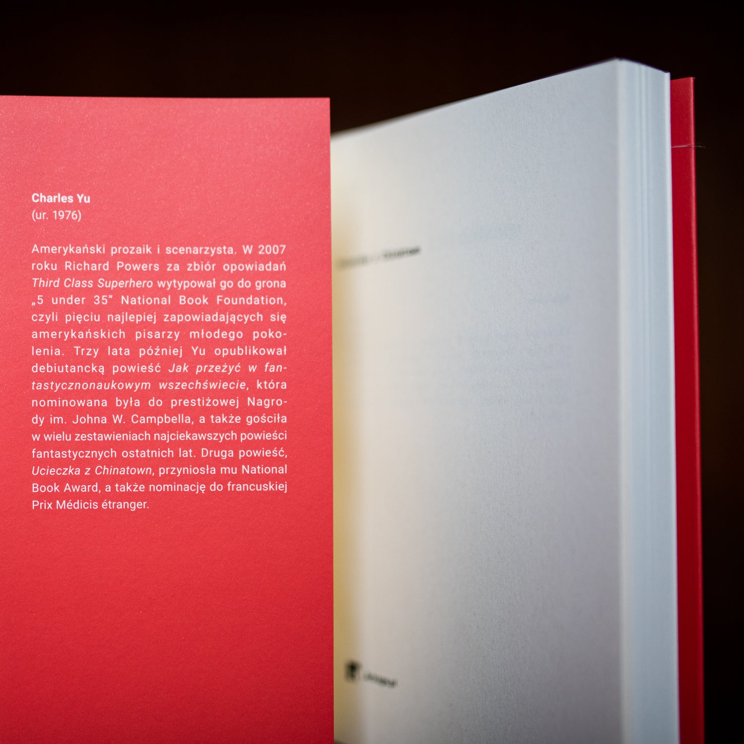 Czy Drugoplanowy Azjata może zostać obsadzony jako Gość od Kung Fu? Czy odtwarzamy tylko narzucone przez społeczeństwo role? „Interior Chinatown” to najważniejsza współczesna książka o tym, jak pozostać sobą w świecie, który za wszelką cenę chce opakować nasze życie w proste etykiety. Charles Yu, jeden z czołowych młodych głosów literatury amerykańskiej, gra z konwencją hollywoodzkiego filmu kung-fu, pełnymi garściami czerpiąc z popkultury, by przyjrzeć się takim zagadnieniom, jak rasa, emigracja, cena awansu społecznego, „amerykański sen” czy asymilacja kulturowa. A wszystko to w przezabawnej, jak zgodnie podkreślają krytycy, i inteligentnej prozie zapisanej w formie scenariusza filmowego.